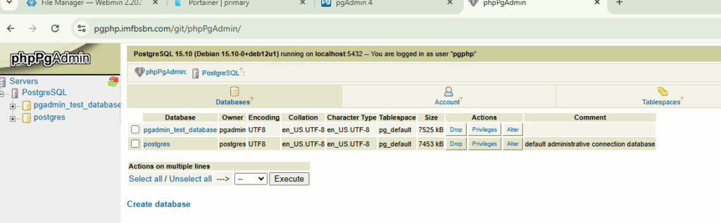 Now you have loaded PostgreSQL and installed an updated version of phpPgAdmin.