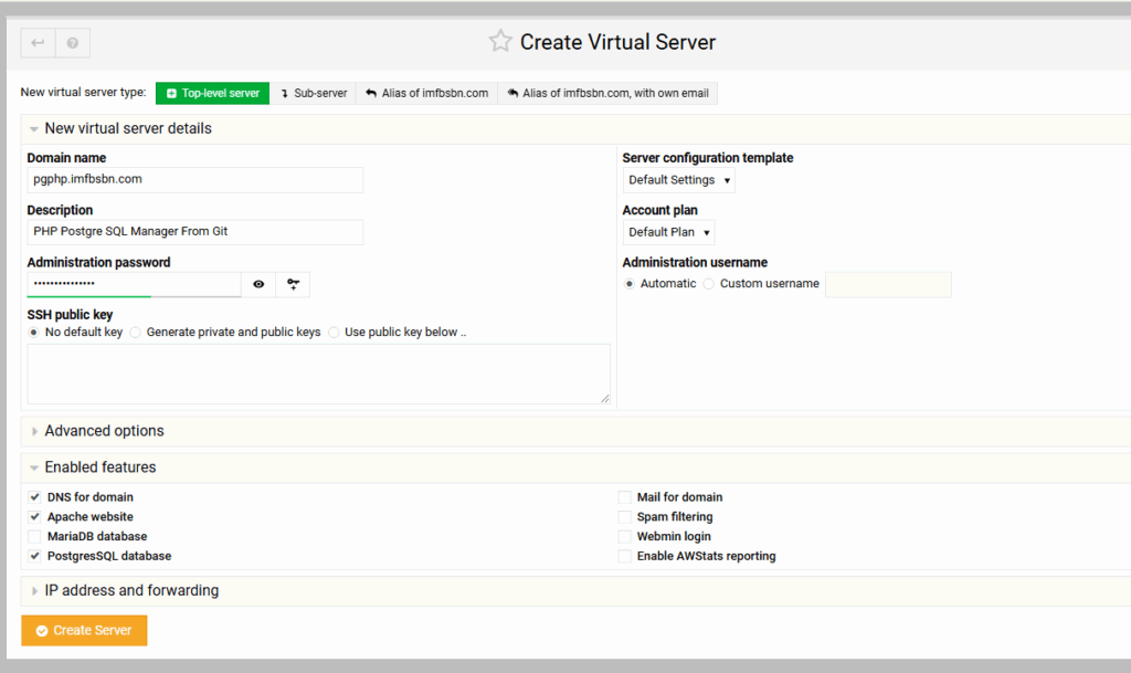 PostgreSQL, Virtualmin, & phpPgAdmin