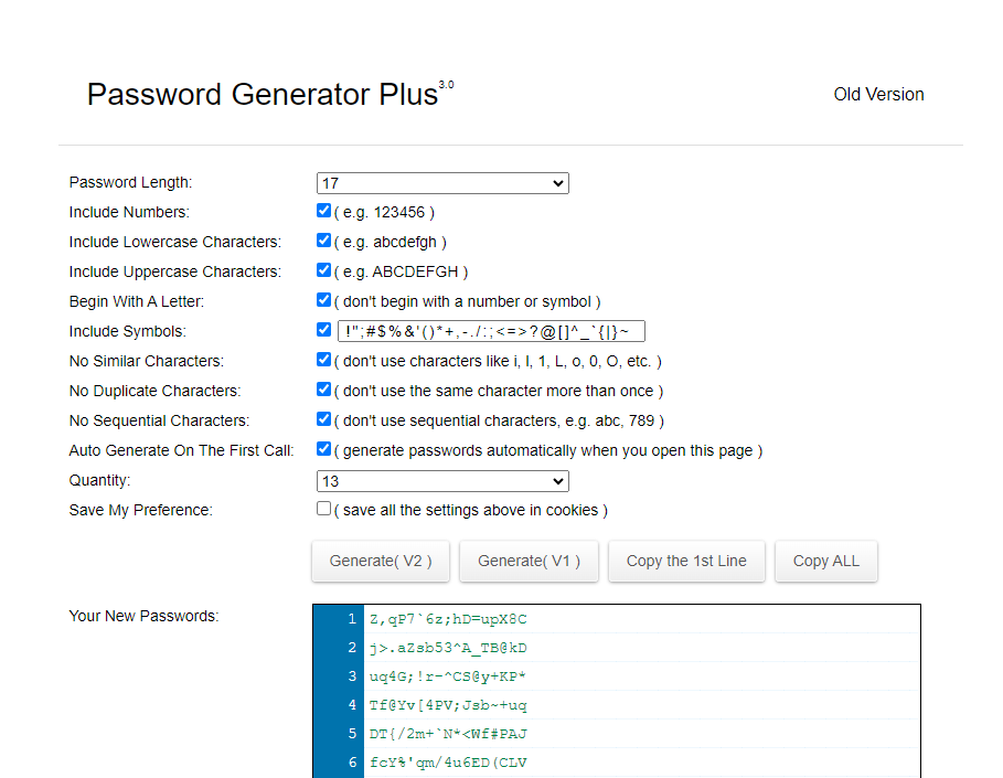 Adjust the settings to your liking, and it will give you a list something like this: