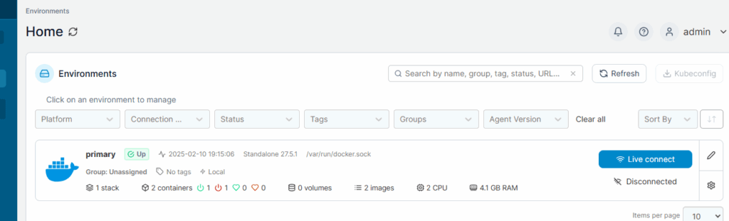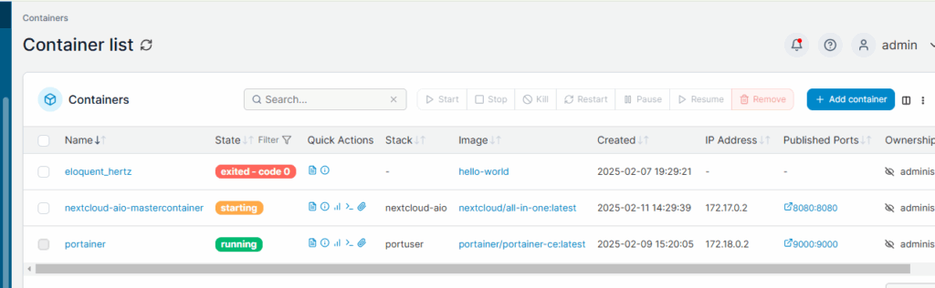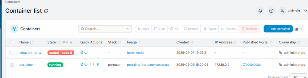 Portainer will download the images, create the containers, and start the applications. You should get something like this: