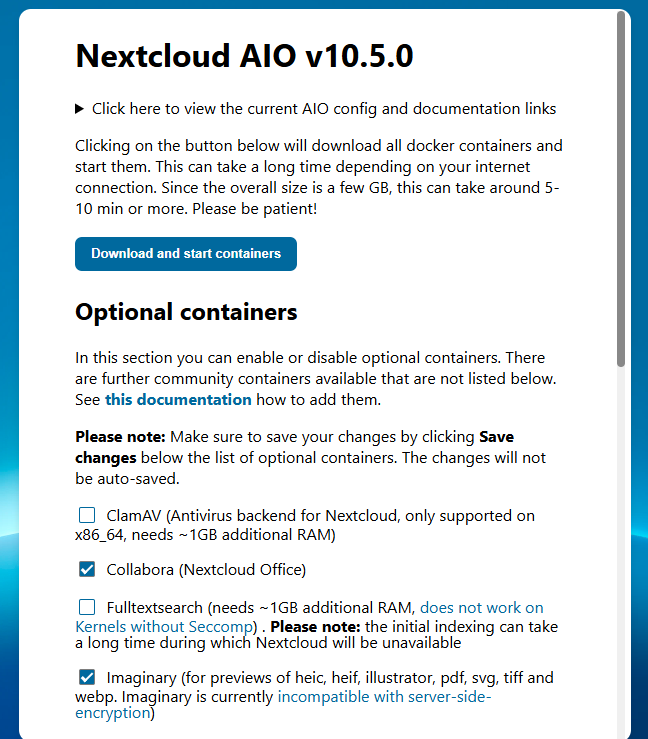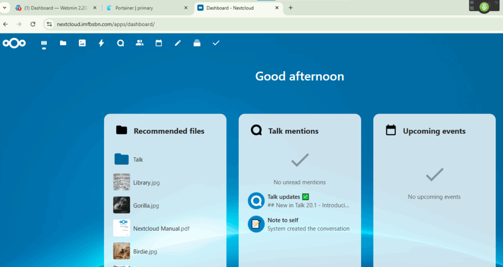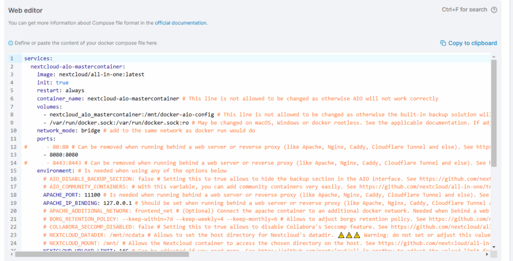 - The official docker compose file calls for running cron jobs from inside the container. We are going to set up cron jobs from within Virtualmin.