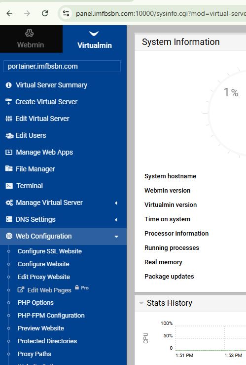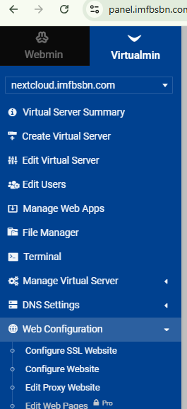 Head back over into Virtualmin.