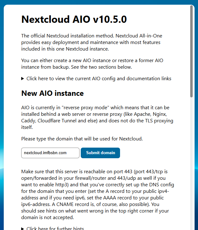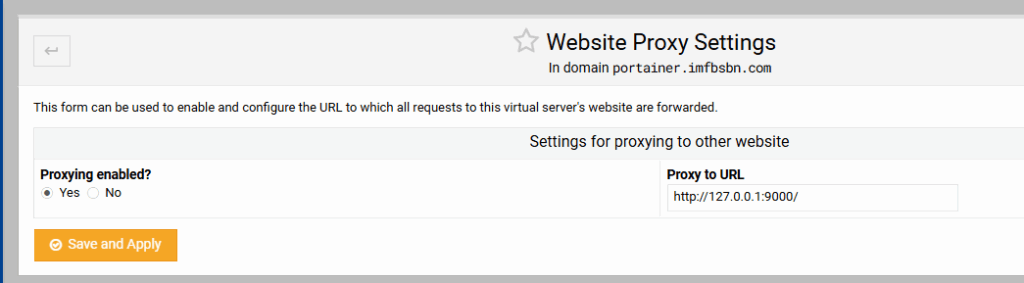 Again, we need to set up the reverse proxy for this domain.
