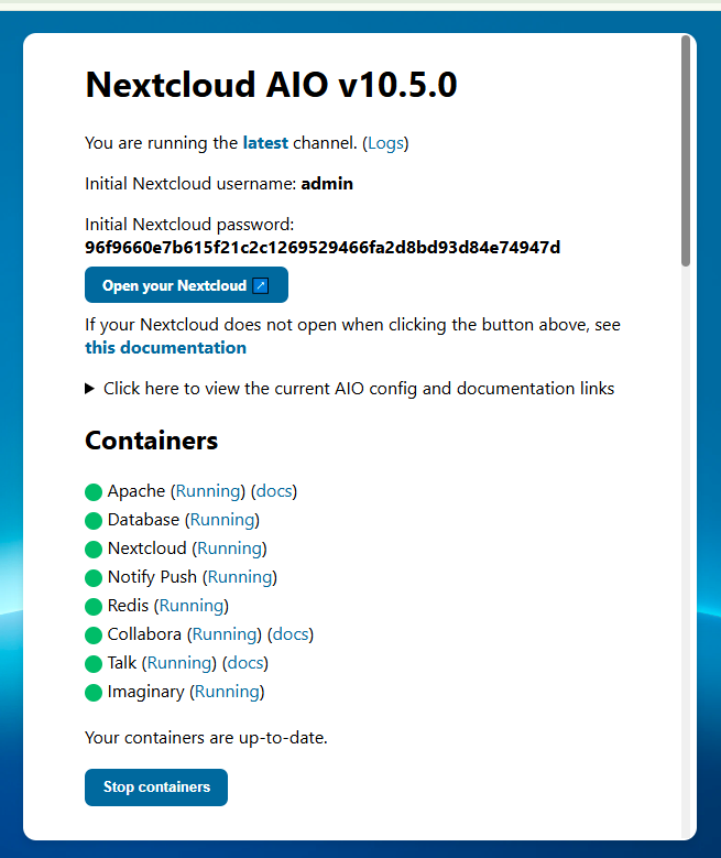 This would be a good time to check the container logs and look for errors. If everything went well we’re almost done.